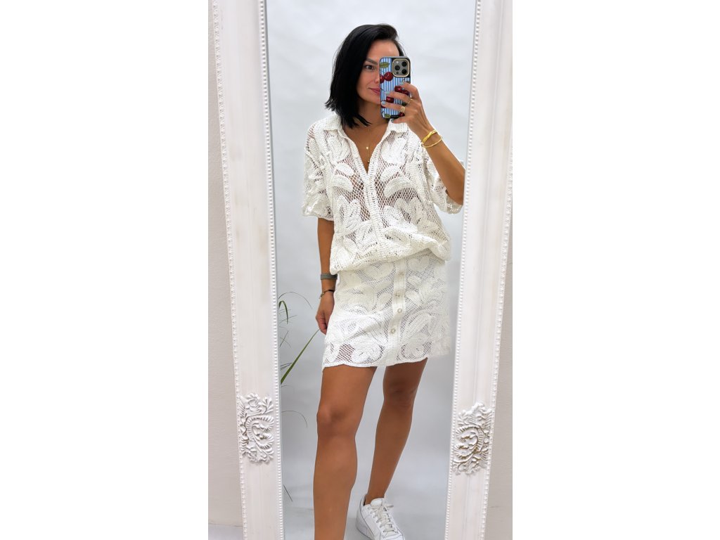 Elegantní a stylový háčkovaný komplet, který je ideální pro letní dny a večery. Tento komplet se skládá z univerzální halenky a sukně ve dvou velikostech, což zajišťuje pohodlí a flexibilitu při nošení.