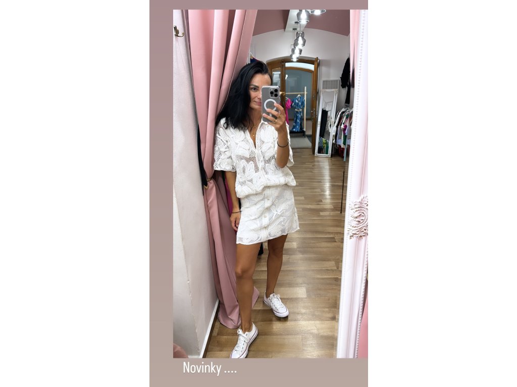 - Design: Krátké rukávy, kulatý výstřih, háčkovaný vzor