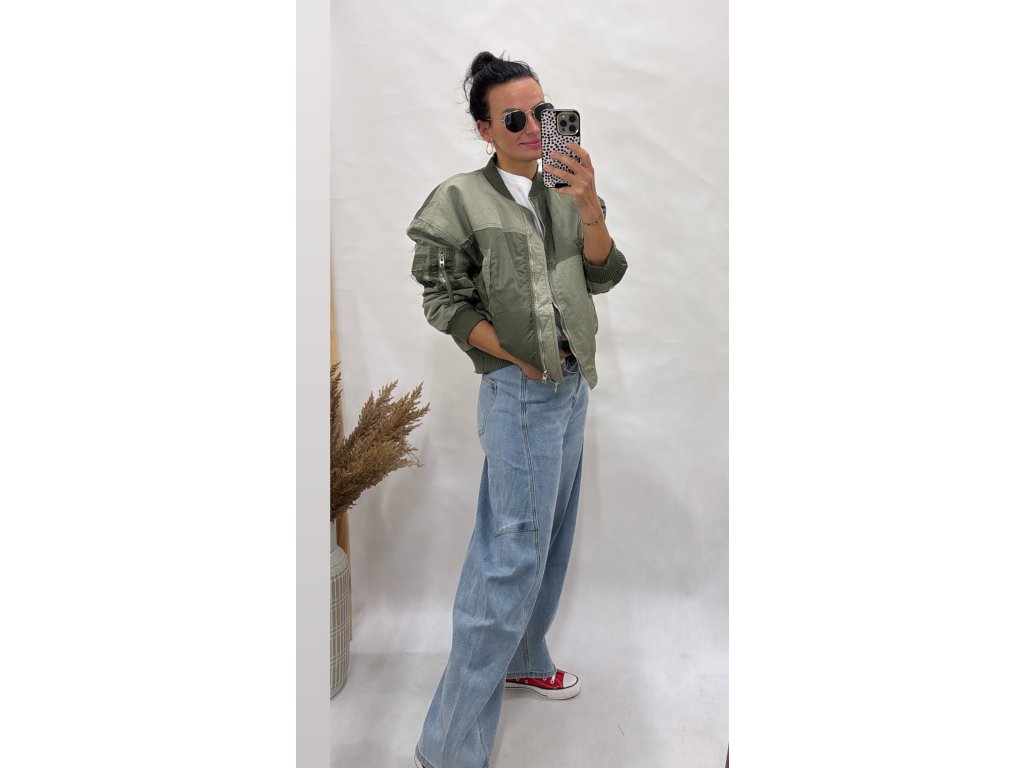 Trendy bunda s army nádechem a efektem mírného obnošení – schválně „odbaná“ pro ten správný streetový vibe. Má volnější střih, pružné náplety na rukávech a spodním lemu a výrazné kapsy včetně kapsy na rukávu. Skvěle se hodí k džínám, teniskám i šatům pro kontrastní look.