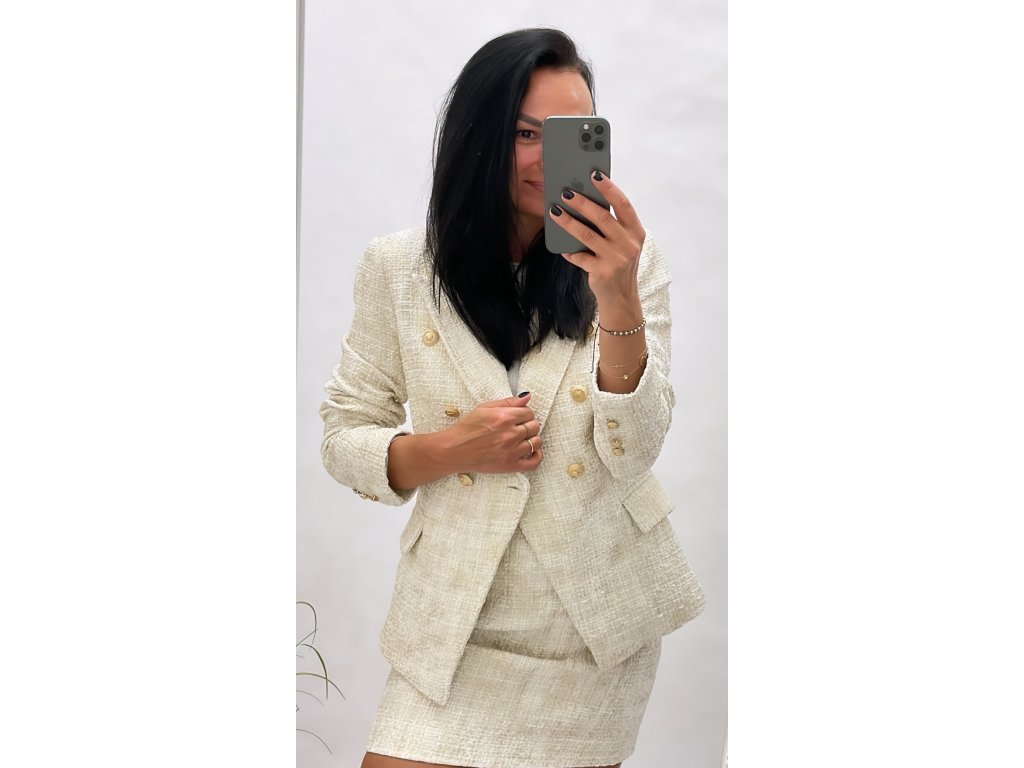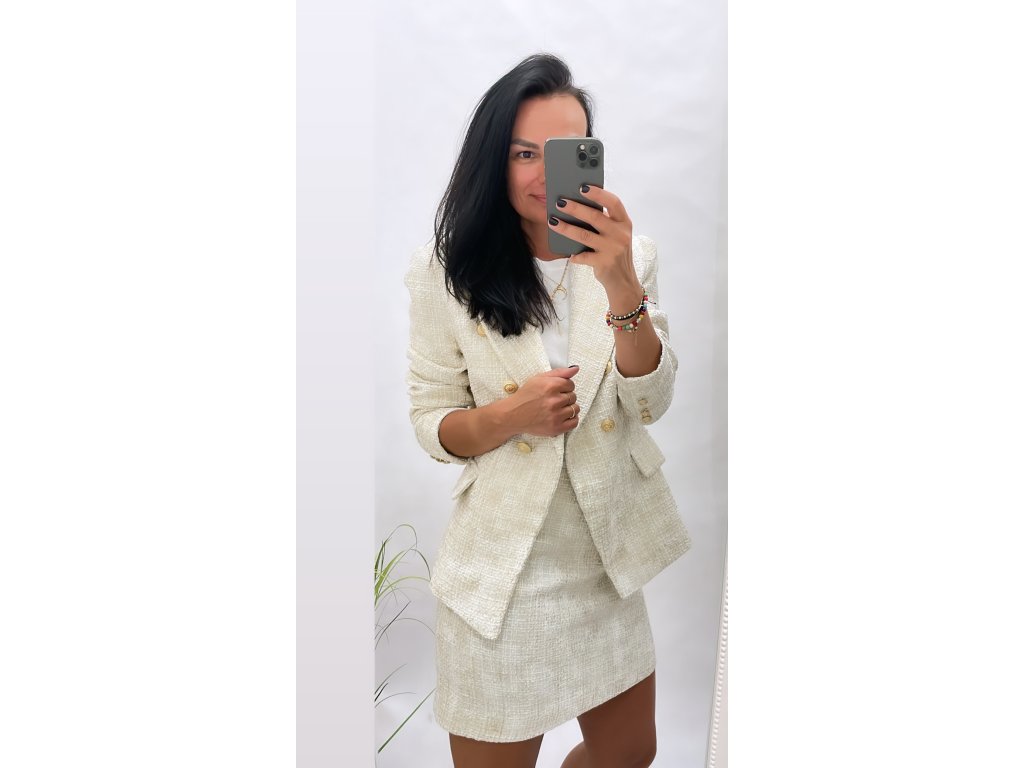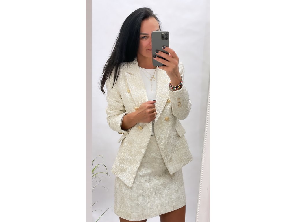 Tento krémový komplet je vyroben z pevného a teplejšího materiálu, který je ideální pro jarní období. Jeho jemná barva a pevný materiál vám zaručují nejenom vynikající vzhled, ale také pohodlí a praktičnost. Tento komplet je skvělou volbou pro každodenní nošení i speciální příležitosti. Dopřejte si elegantní a pohodlný vzhled s tímto krémovým kompletu!"