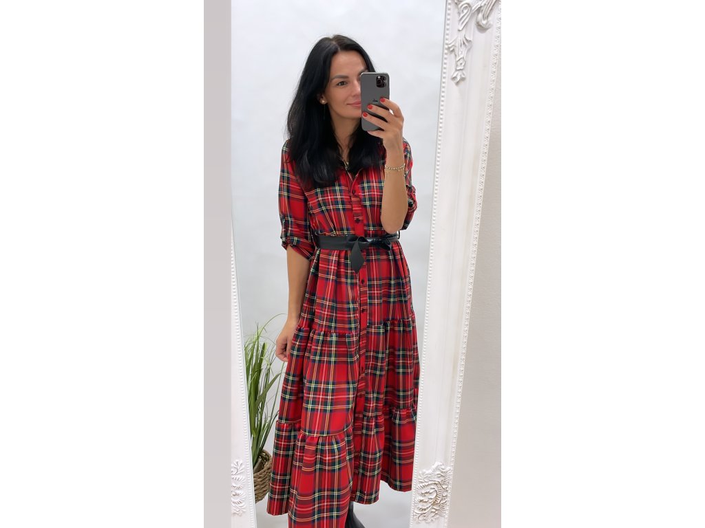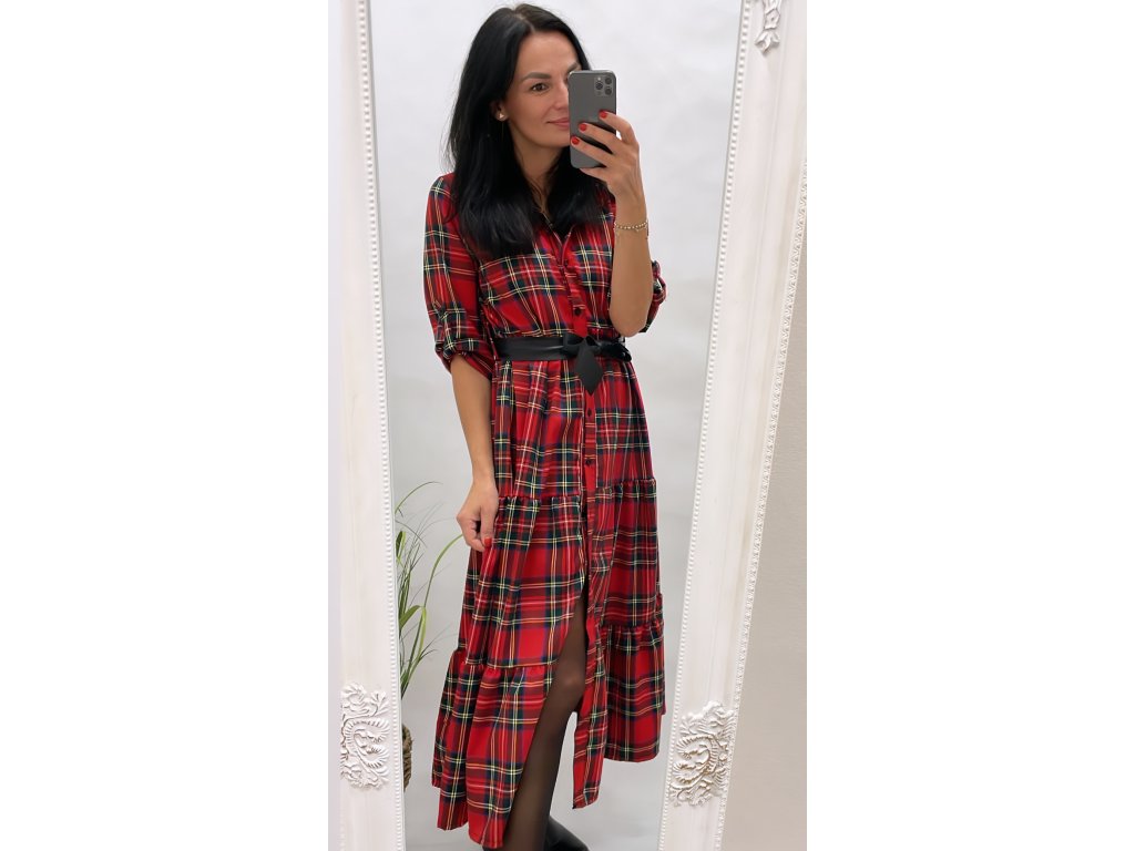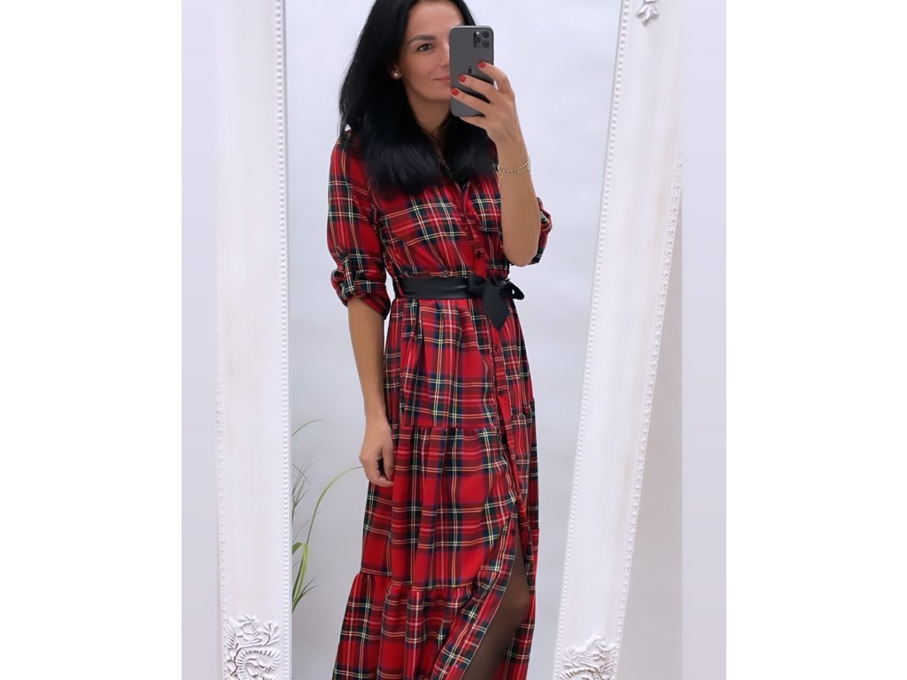 Elegance a pohodlí spojené v jednom, naše červené kostkované dlouhé šaty s koženým páskem (mašlí) jsou špičkovou volbou pro každou příležitost. Zaujměte svým jedinečným stylem díky koženému pásku v podobě mašle, který dodá šatům neodolatelný šarm. Kvalitní materiál a precizní zpracování zaručují pohodlný a elegantní vzhled