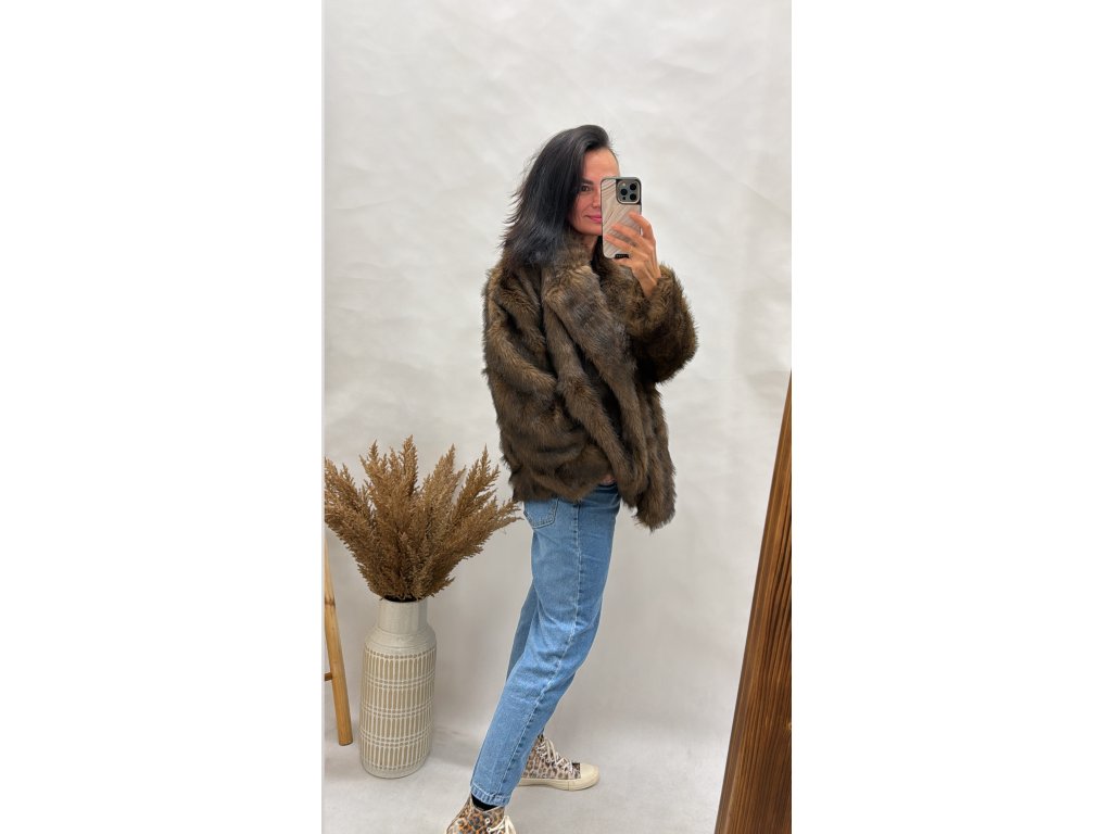 Elegantní a hřejivý kožíšek v nadčasové hnědé barvě, ideální pro chladné dny.