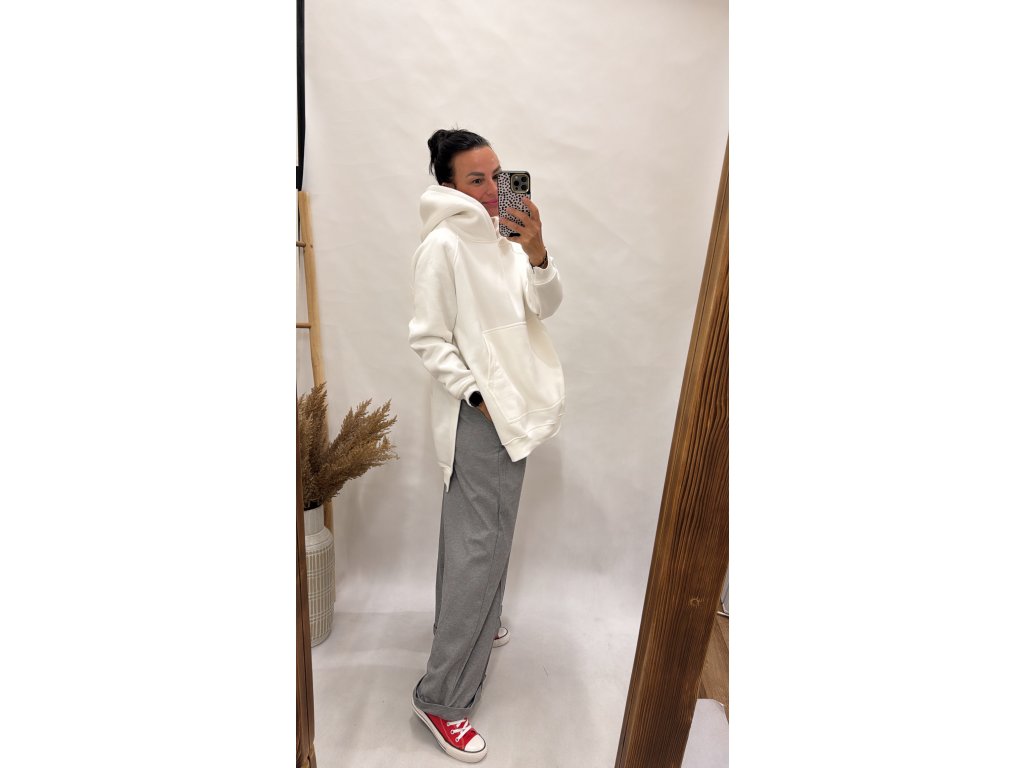 Pohodlná mikina v prodlouženém oversize střihu, kterou si zamiluješ na první oblečení. Má velkou kapuci, rozparky po stranách a výraznou klokaní kapsu. Ideální pro volný den, cestování nebo ležérní městský styl.