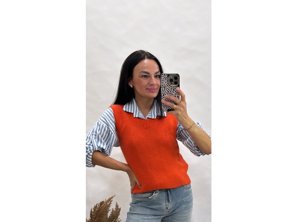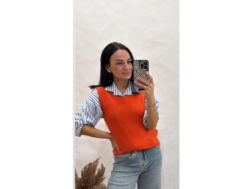 Pletená vesta – výrazná oranžová