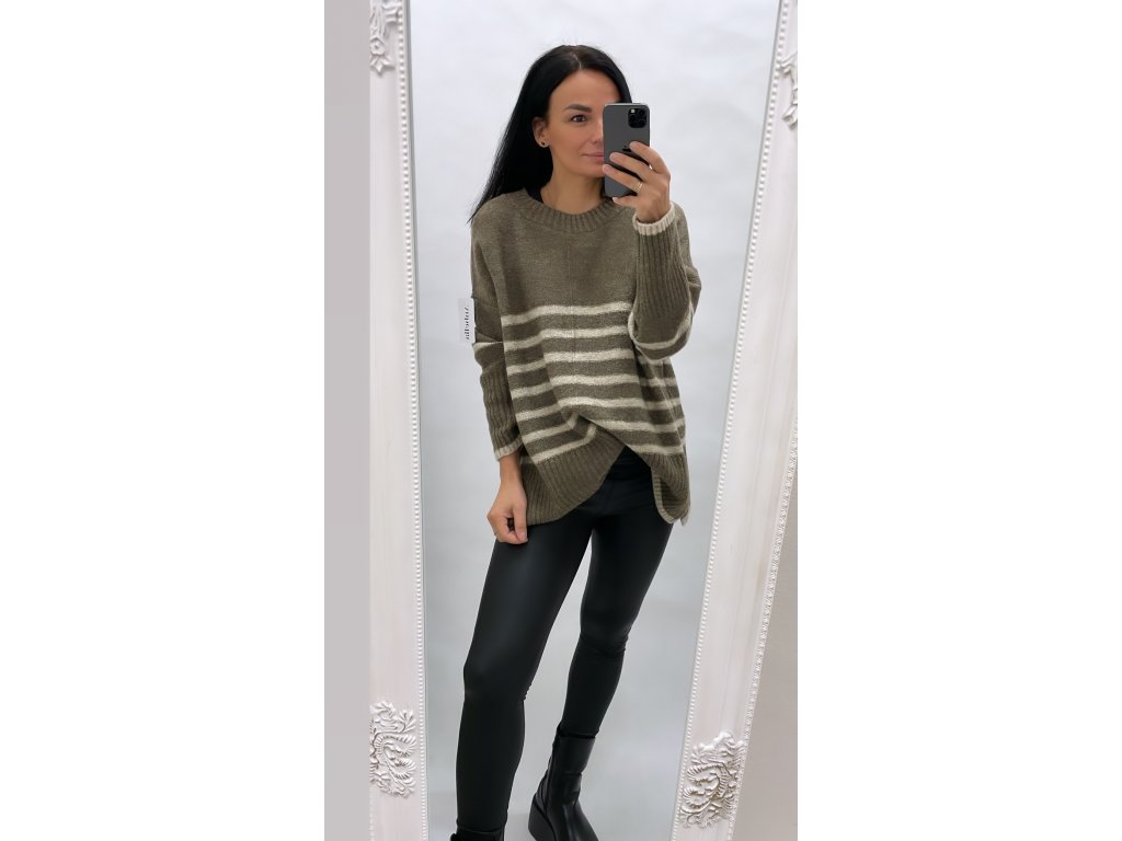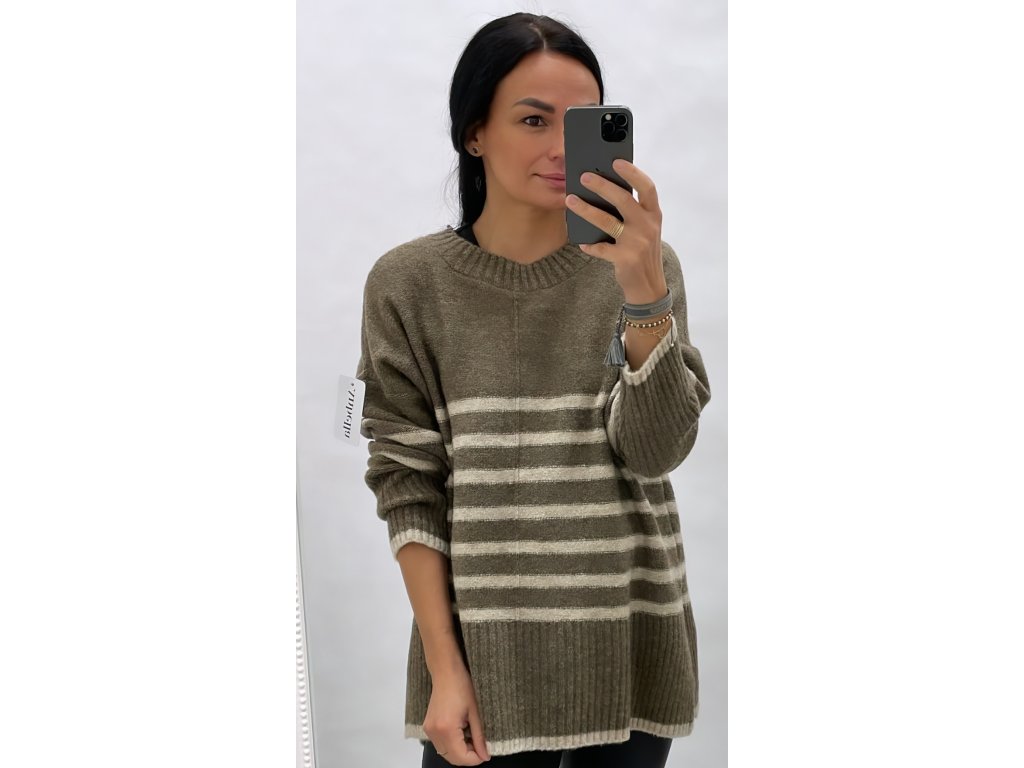 Krásny svetr s pruhy v hnědé barvě